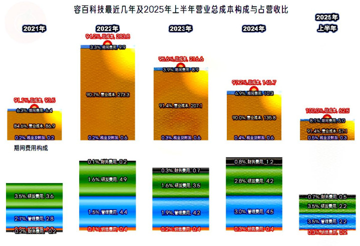 主营业务盈利空间已经持续下跌了三年半,2025年上半年正好保本,除了毛利率波动的影响之外,期间费用占营收比也有重大影响,特别是2025年上半年,其占比已经达到了8.1%,比最低年份高出了一倍多,这当然和其营收下跌直接相关。