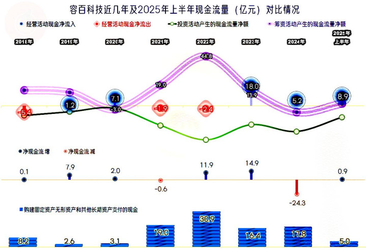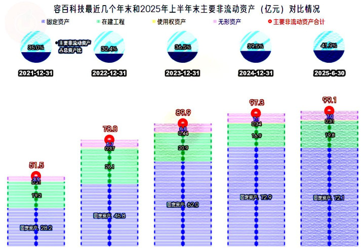 固定资产和经营性长期资产的规模在2024年末以前是持续大幅增长的,和营收被“腰斩”表现显得有点格格不入。2025年上半年末的固定资产规模基本稳定,在建工程仍然处于高位。投资的金额在下降,但项目并没有全部完工,需要的投入只是推迟了。